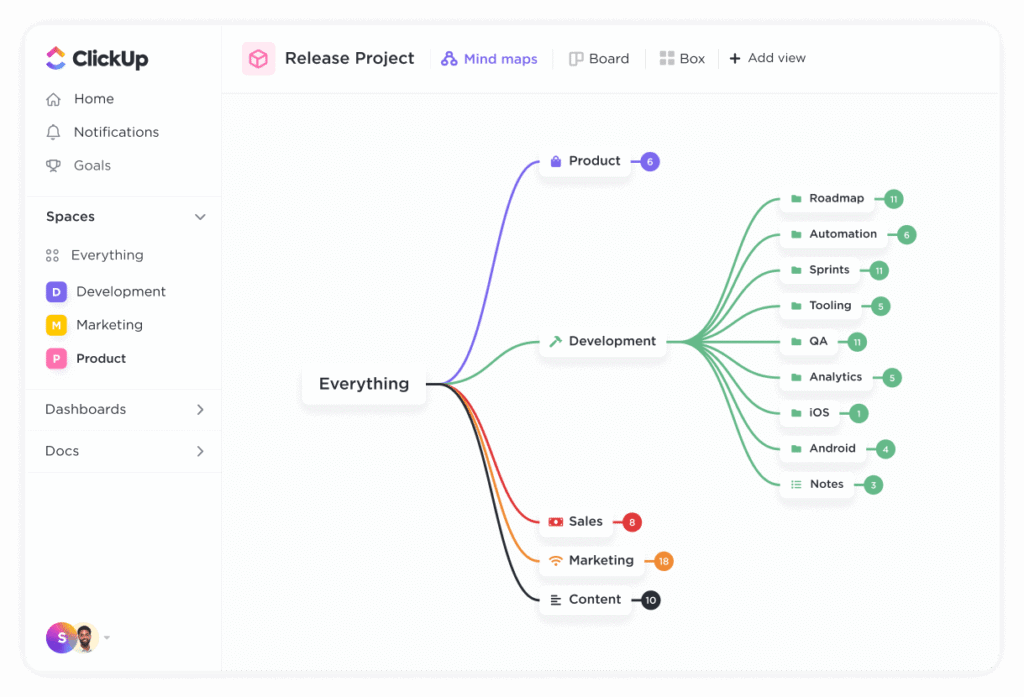 ClickUp supports multiple views so teams can visualize the same data differently.